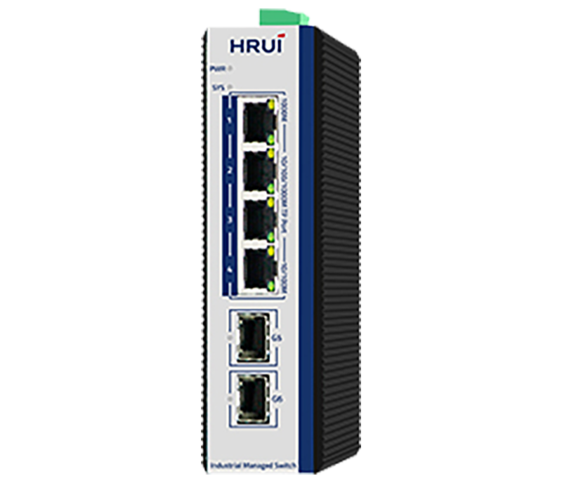 The HR600-SWG2042AS is a robust and efficient 2.5G industrial managed Ethernet switch designed for optimal performance and reliability in demanding environments. Featuring four Gigabit RJ45 ports, two 2.5G uplink SFP ports, and a console port, this switch supports a high bandwidth of 12Gbps. It offers advanced Layer 2 management and is compatible with the ERPS protocol for seamless ring network redundancy. Built to withstand extreme conditions, it operates within a wide temperature range of -40°C to +75°C. Equipped with IP40-rated protection, a surge protection of 6KV, ESD protection of 15KV, and a versatile DC power input range of 12-55V, the HR600-SWG2042AS guarantees stability and security for industrial applications.